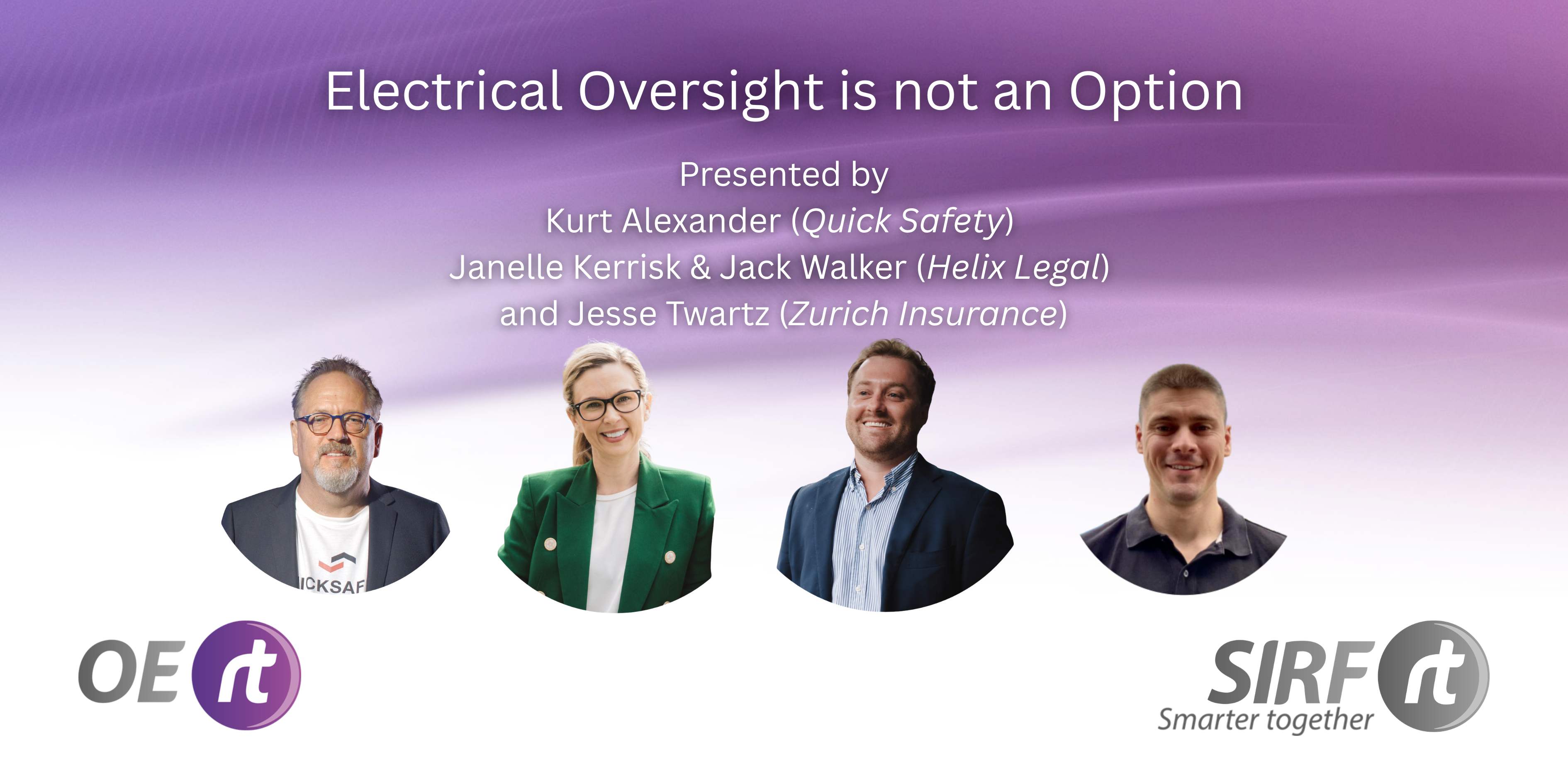Thank you to those that joined us for the Electrical Oversight is not an Option session we hosted with Kurt Alexander (Quick Safety), Janelle Kerrisk & Jack Walker (Helix Legal) and Jesse Twartz (Zurich Insurance), we hope you gained valuable information from the session.